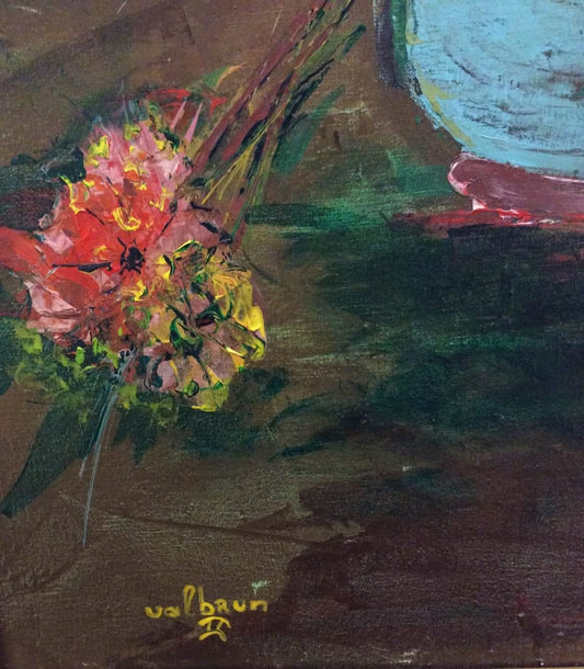 Johnny Valbrun (II) (Dcd 2005) 20"x16" Vase of Flowers 1989 Acrylic on Canvas #10-3-96MFN