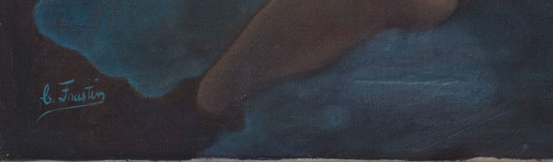 This evocative composition by Haitian artist Célestin Faustin presents a Vodou-inspired dream of village life, where figures, animals, and symbolic elements unfold within a layered and surreal landscape. The painting brings together multiple scenes that merge interior and exterior space, suggesting a world shaped by memory, spirituality, and imagination. A reclining figure appears in the foreground while other figures emerge across the composition, including a standing nude and a figure in motion. A pig occupies the lower portion of the scene, grounding the imagery in rural Haitian life, while fluid architectural forms and organic shapes dissolve into one another. The composition evokes a sense of transformation and spiritual presence often associated with Vodou visual language. Faustin contrasts deep blues and shadowed forms with warm, light-filled tones, creating a dynamic tension across the canvas. Dripping, melting contours and softened transitions enhance the dreamlike atmosphere, suggesting a space where the visible and invisible worlds intersect. Célestin Faustin was a Haitian artist known for expressive and imaginative compositions that blend daily life with symbolic and spiritual themes. His work often reflects the influence of Haitian Vodou culture through layered imagery and narrative complexity. This original oil painting is hand-signed by the artist and is accompanied by a Certificate of Authenticity issued by Myriam Nader Haitian Art Gallery.