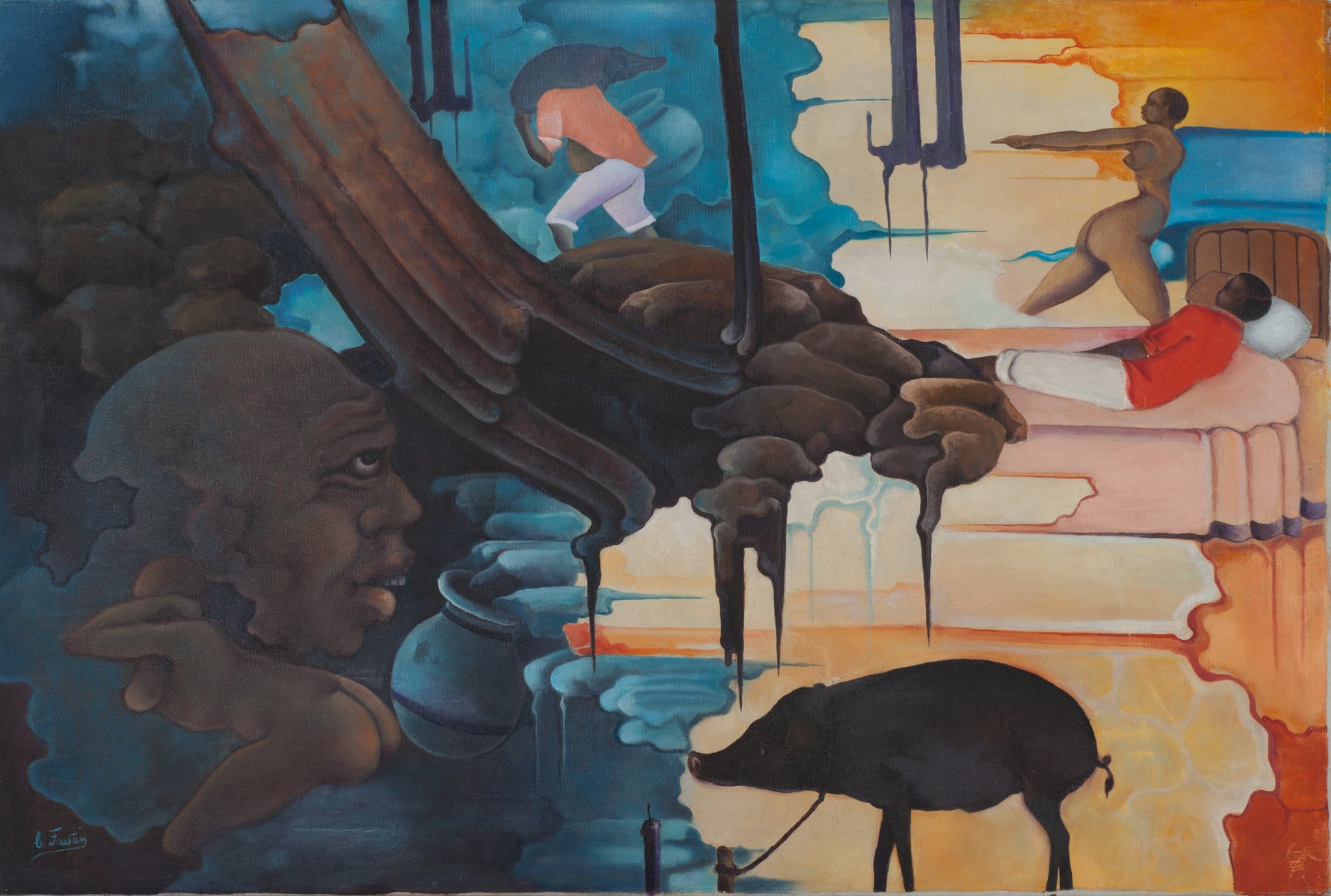 Celestin Faustin (1948–1981) was a Haitian painter, Vodou priest, and one of the most visionary figures of modern Haitian art. Often considered a foundational Surrealist within Haitian painting, Faustin studied under Wilmino Domond before developing a haunting and poetic style of his own. His works combine surreal imagery, spiritual symbolism, and dense figurative compositions that explore personal anguish and the complex relationship between Vodou cosmology and inner experience. Art historian Gérald Alexis wrote in Peintres Haïtiens that Faustin was “too much of a virtuoso to be considered a primitive painter.” Faustin’s paintings have gained renewed international attention through exhibitions such as Life and Spirituality in Haitian Art (MOCA North Miami, 2022) and the 2022 Venice Biennale. Today he is regarded as one of the most powerful surreal voices in Haitian art