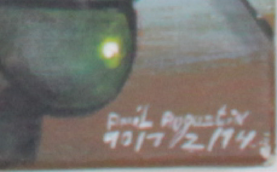 In this imaginative work, Jean Amil Augustin blends portraiture and abstraction, depicting a face intertwined with geometric lines, amphora-like shapes, and cosmic symbols. Painted in Switzerland and signed (07/02/17), the piece is in very good condition, with strong pigments and no visible losses. It is sold unframed, comes from a private Swiss collection, and will be shipped with a Certificate of Authenticity issued by our gallery.