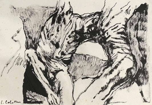 Ludovic Booz (1940-2015) 30"x48" The Couple 1973 Acrylic on Canvas Painting #13-3-96GSN-Fondation Marie & Georges S. Nader