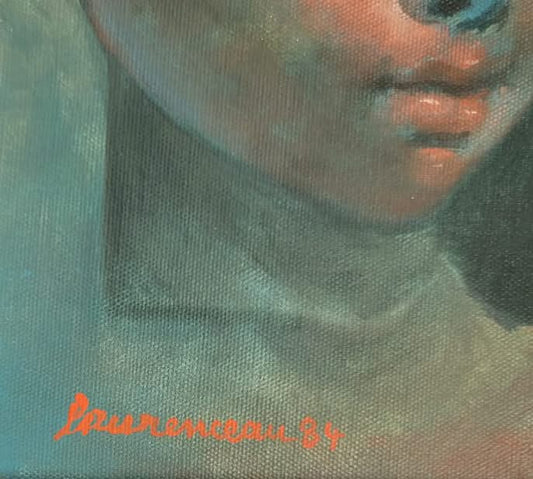 Lyonel Laurenceau 10"x8" Little Girl Portrait 1984 Acrylic on Canvas Framed Painting #2MA