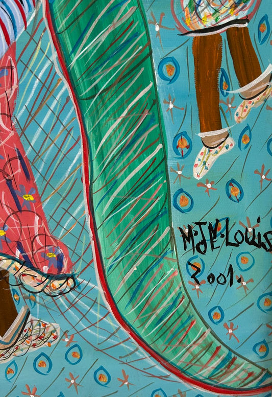 Maxan Jean Louis 24"x30" La Mort de Brignole Lindor 2002 Acrylic on Canvas Unframed Painting #4AK