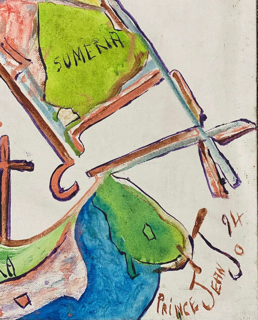 Prince Jean Jo (Haitian, 1948-1996) 12"x16" Flashback To Egypt 1994 Acrylic On Panel Unframed Painting #3MFN