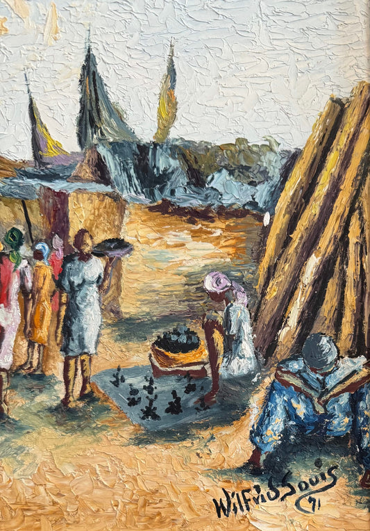 Wilfrid Louis 12"x16" Village Scene 1971 Oil on Canvas Painting#1KE