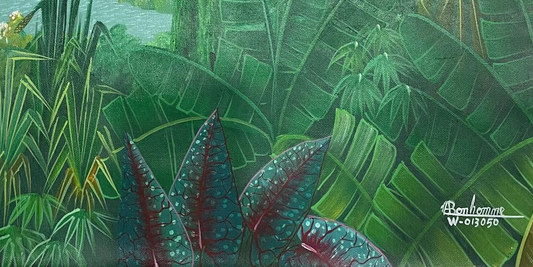 Albott Bonhomme 20"x24" Lush Tropical Forest with Birds, Cactus & Cascade 2022 Acrylic on Canvas Painting #33MFN