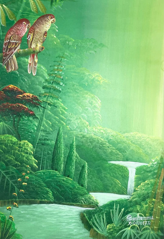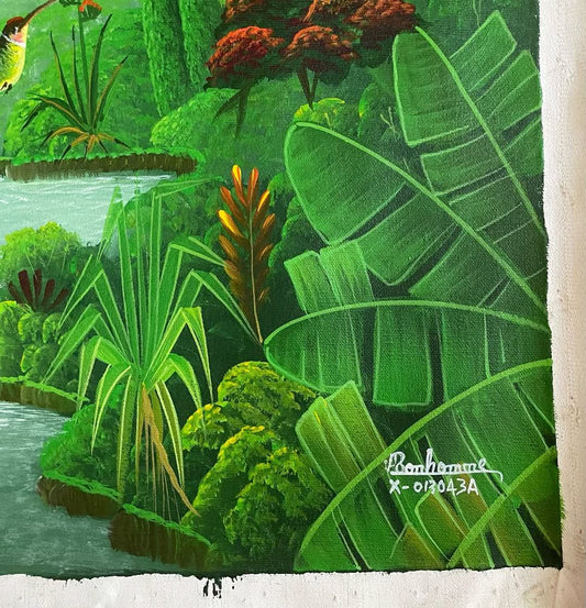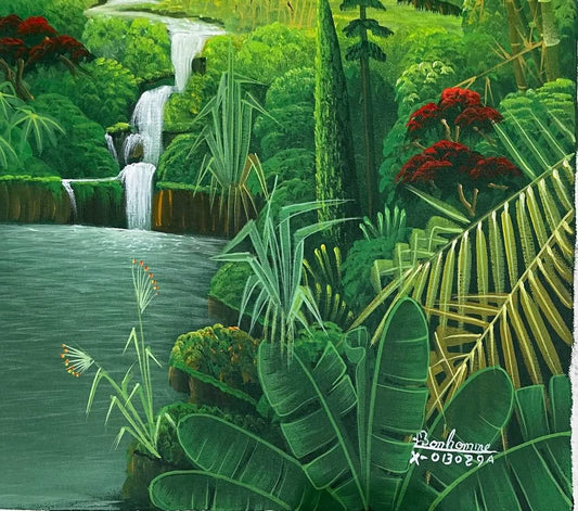 Albott Bonhomme 20"x24" Jungle with Birds & Cascades 2021 Acrylic on Canvas #13MFN
