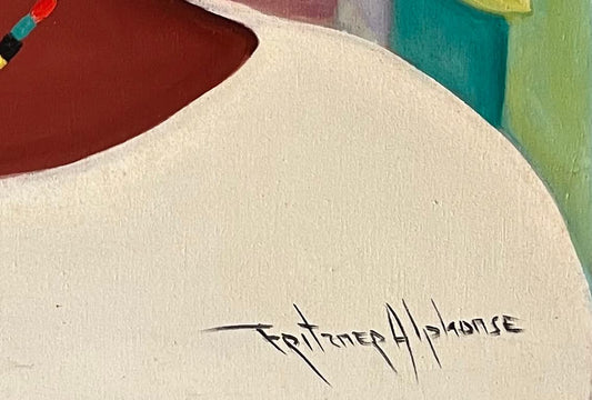 Fritzner Alphonse (Haitian, 1938-2006) 35.5"x30" Elegant Lady With Hat Oil on Canvas Unframed Painting #1MG
