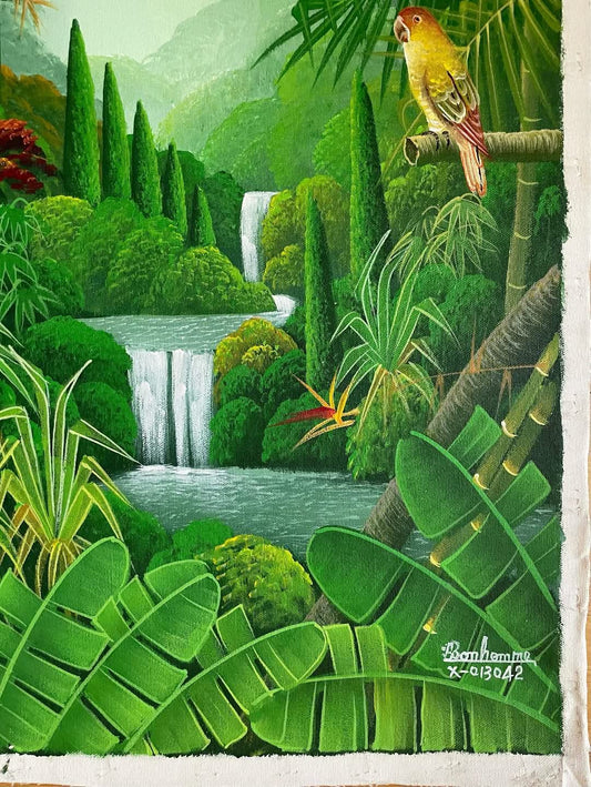 Albott Bonhomme 24"x20" Lush Vegetation and Cascades 2021 Acrylic on Canvas #14MFN