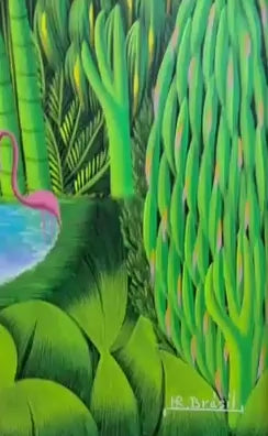 Henri-Robert Bresil (1952-1999) 20"x24" Flamingos in the Tropical Forest c1990 Oil on Canvas Unframed Painting#1MF
