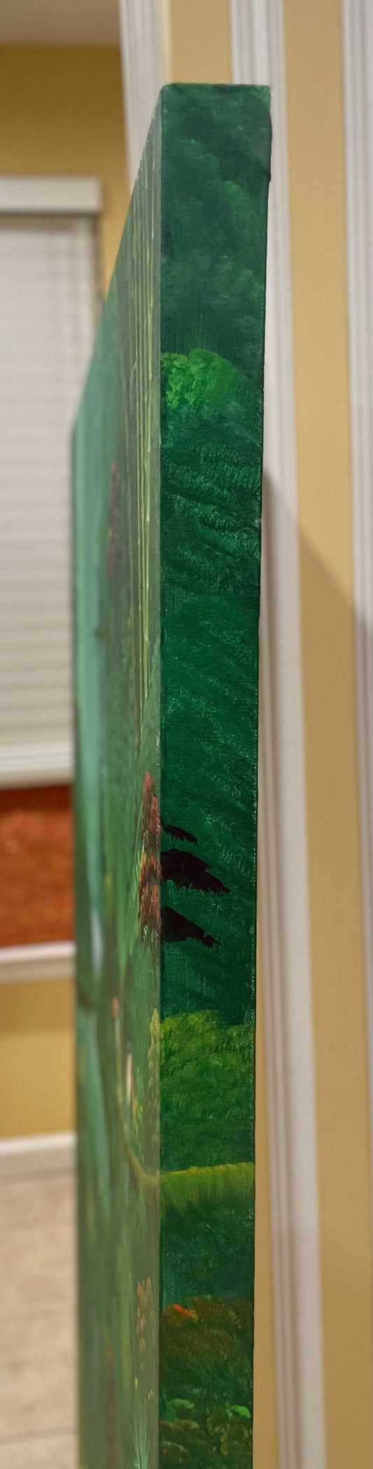 Albott Bonhomme 60"x40" Paradise with Birds- Painted 2" borders 2023 Acrylic on Canvas Painting #40MFN