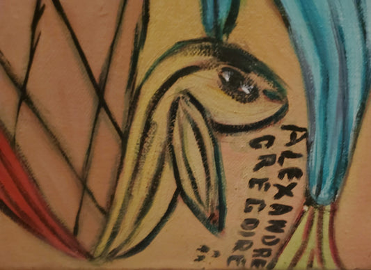 Alexandre Gregoire (1922-2001) 10"x8" Musician Birds Oil on Canvas Unframed Painting #1MF