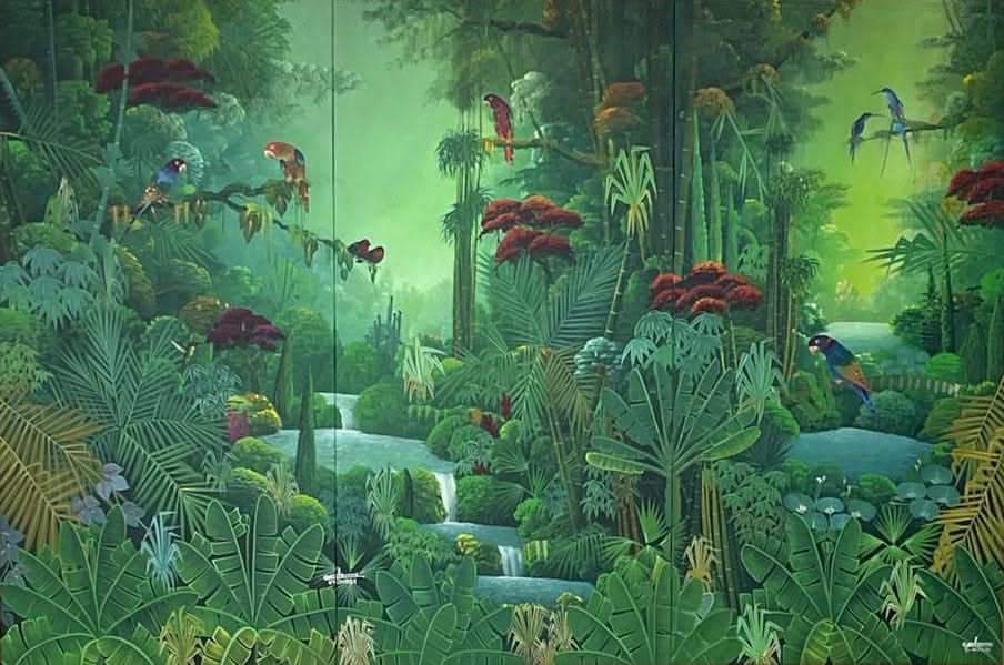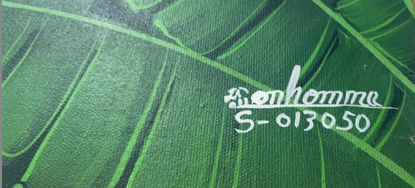 Albott Bonhomme was born in 1963 in Port-de Paix, Haiti. He is a self-taught artist who has developed a unique style depicting colorful birds in lush vegetation and the misty atmosphere of his imaginative tropical jungles n Haiti. He uses various tones of greens, and the birds are presented in vibrant colors. His name is cited in major Haitian books, and he has exhibited in Haiti, the US, and Japan.