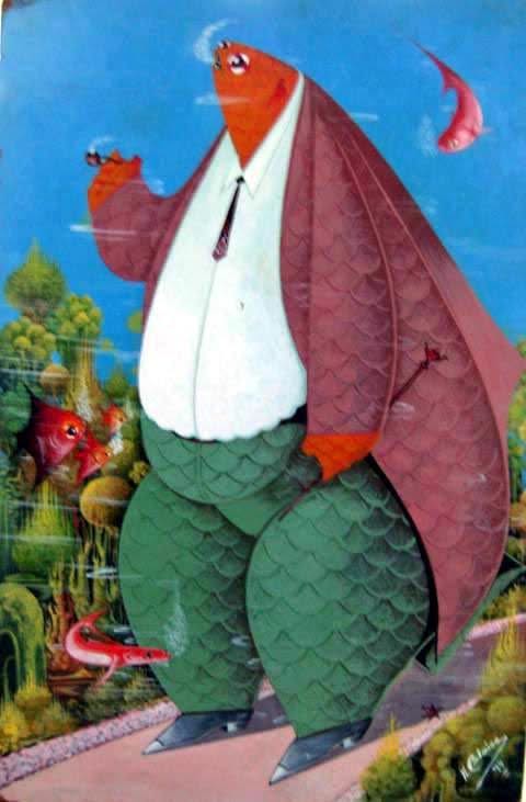 Well-known Haitian artist, Andre Blaise has participated in many exhibitions in Haiti, France, and the United States. "Humanity is depicted in the form of a fish. His works attest to Haitian lifestyles, embodied in fish-like subjects" Peintres Haitiens by Gerald Alexis. Andre Blaise references can be found in all major Haitian art books.