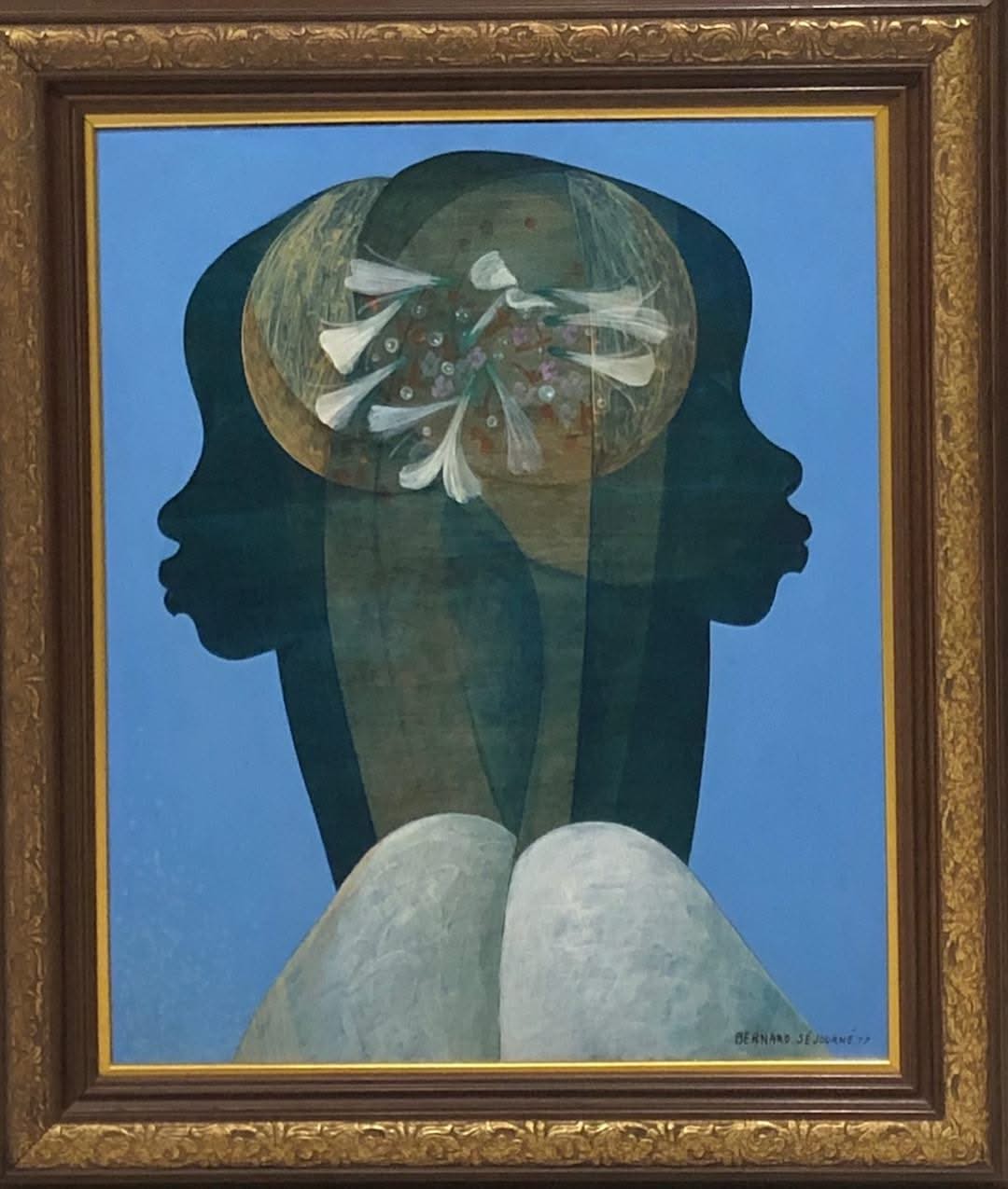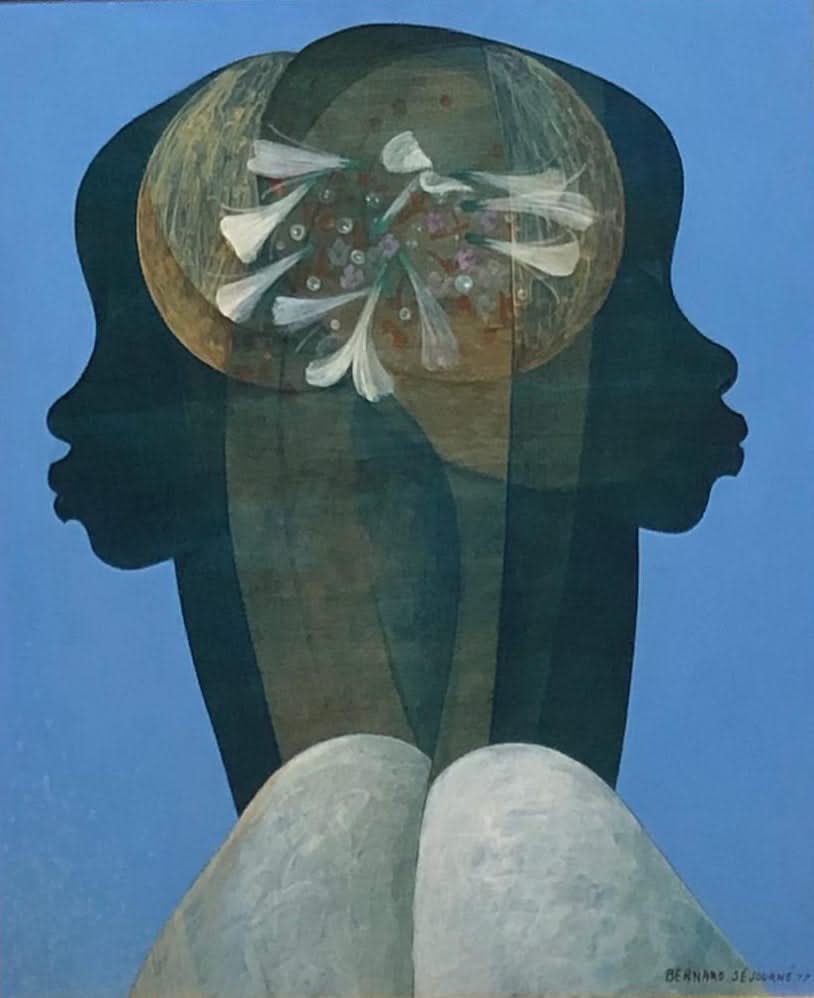 Born on November 20, 1947, in Port-au-Prince, Bernard Sejourne began studying art formally, after his graduation from high school. Painter and sculptor, he was the best-known artist of the school of art known as the School of Beauty, which honors the woman. His work depicts beauty, elegance, and grace. His themes were mostly women, and flowers sometimes landscapes. Séjourné liked to paint on large surfaces of Masonite in acrylic to heighten the effect of movement, which he created by his use of fluid lines. His colors range from cool to tropical. "Sejourné's mastery of space and volume create near-abstract works of referential elements." (Peintres Haitiens , Gerald Alexis, Editions Cercle d'Art, 2000.) Séjourné exhibited at Calfou and the Esso Salon in Port-au-Prince in 1965; he participated in the Festival of Black Art held in Dakar in 1956, in Montreal Expo in 1957, at the French Institute of Haiti in 1972. Haitian art collectors have highly valued his work. Since his recent death, he has become one of the highly sought after collectibles. Baron Philippe de Rothschild commissioned one of his paintings and used it on the label of his 1986 vintage Chateau Mouton-Rothschild, Pauillac wine bottle.