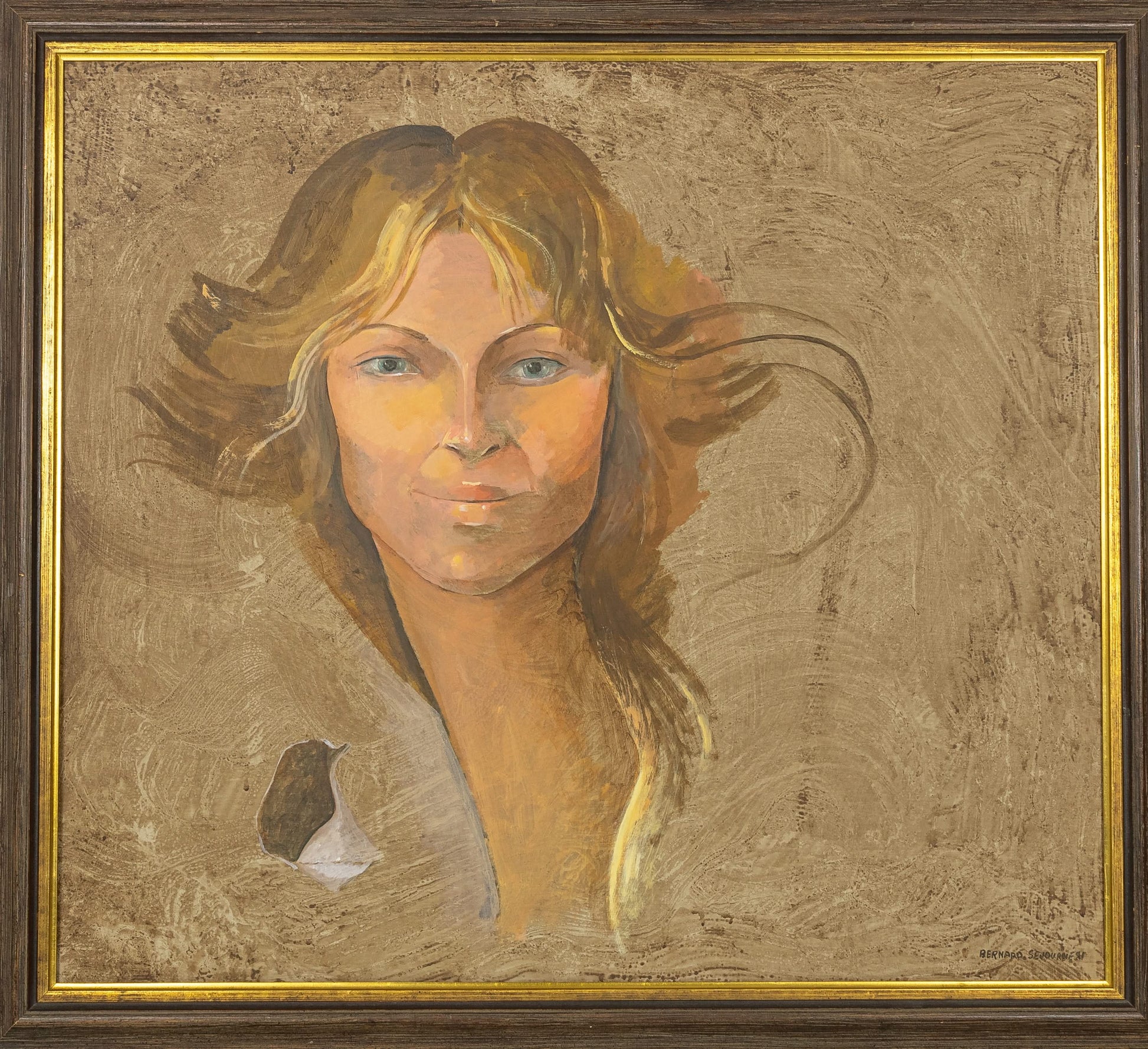 Bernard Sejourne (1947-1994) 30"x35" Portrait of a Blonde 1981 Acrylic on Board Framed Painting #16SS