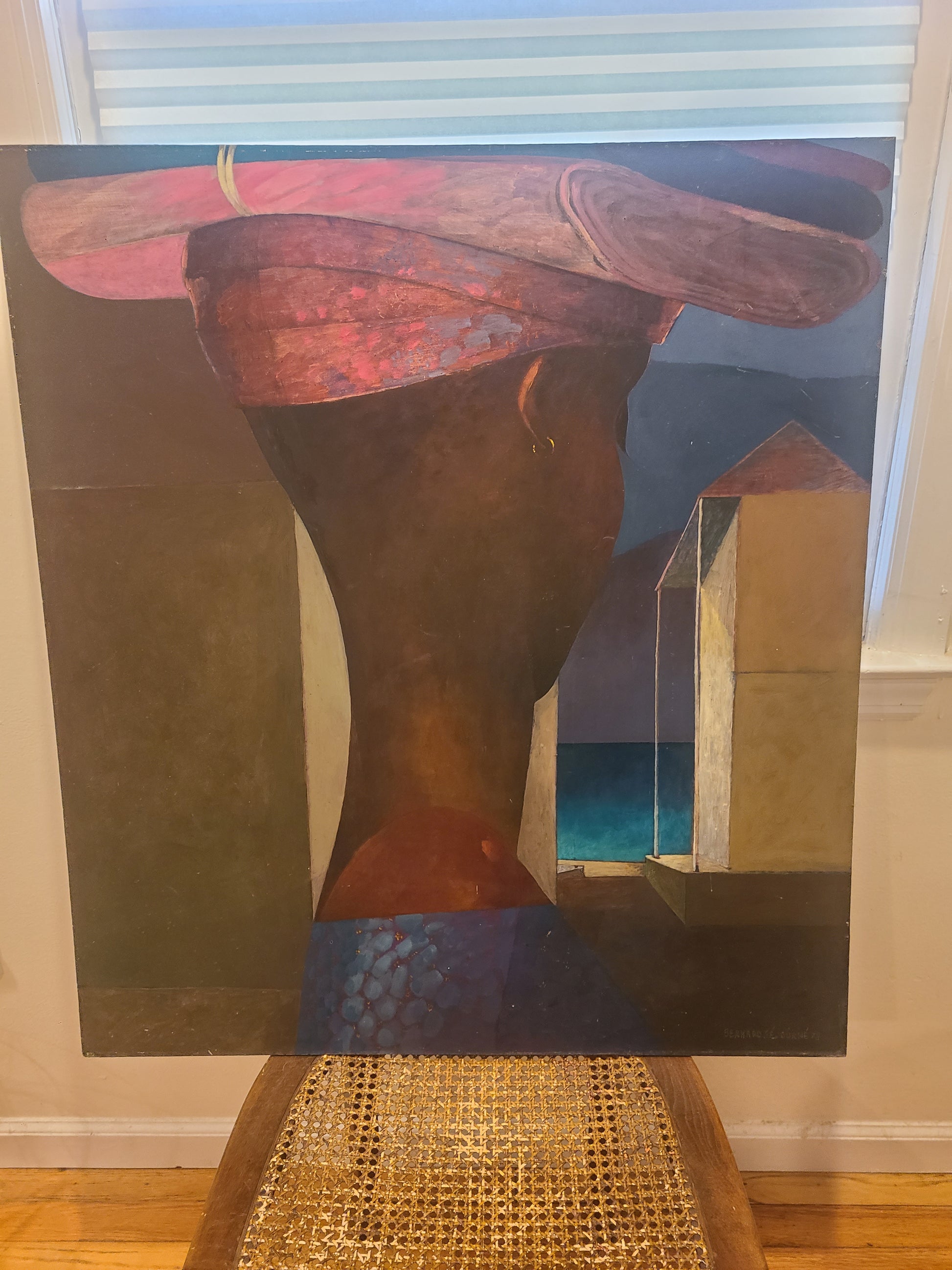 Born on November 20, 1947, in Port-au-Prince, Bernard Sejourne began studying art formally after graduating from high school. Painter and sculptor were the best-known artists of the school of art known as the School of Beauty, which honors women. His work depicts beauty, elegance, and grace. His themes were mostly women, and flowers sometimes landscapes. Séjourné liked to paint on large surfaces of Masonite in acrylic to heighten the effect of movement, which he created by his use of fluid lines. His colors range from cool to tropical. "Sejourné's mastery of space and volume create near-abstract works of referential elements." (Peintres Haitiens , Gerald Alexis, Editions Cercle d'Art, 2000.)