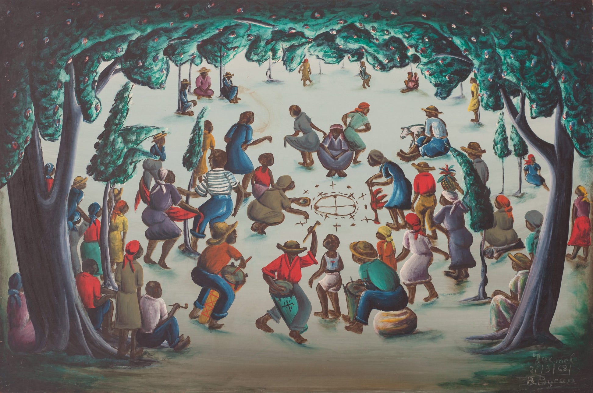Bourmond Byron 24"x36" Vodou Ceremony Under Trees 1968 Oil on Carton Painting #24-3-96GSN-Fondation Marie & Georges S. Nader