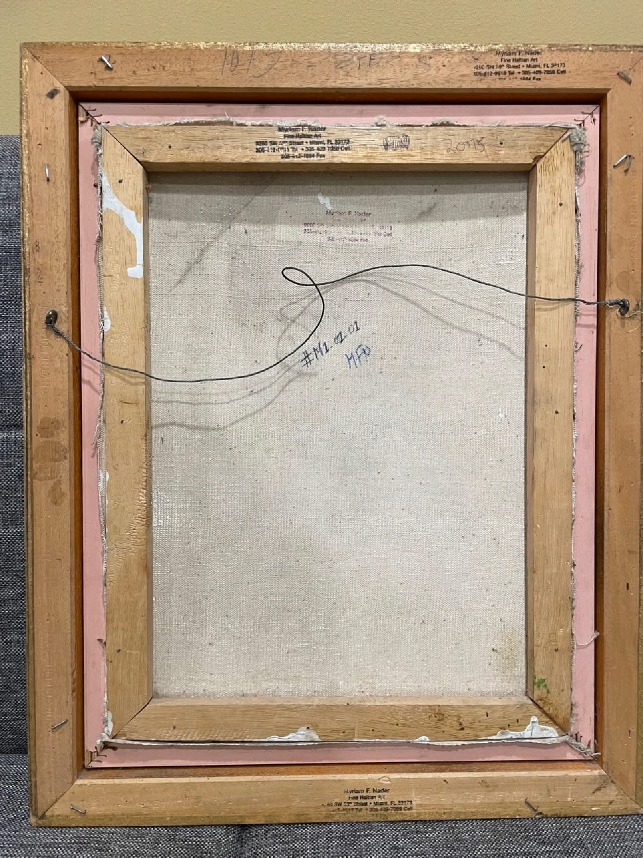 Calixte Henry was born on January 3, 1933, in Port-au-Prince, Haiti, and died in 2010. He began to paint at the Art Center in 1955 with the American painter Barbara Obris. Later, he abandoned his brushes in favor of razor blades which lent heightened finesse and transparency to his painting and later painted with a knife. In his paintings, Calixte eliminates all extraneous details to produce a highly refined soberness of line. He obtains volume through the contrast tones. The rudimentary drawing is compensated by a harmony of colors whose contrasts make up its personality. Henry coaxes an infinite spectrum of vibrations from green and blue. He also worked with more pastel colors and less contrasting tones. “Henry uses a monochrome style with a preference for greens, pinks or blues.” (Sources: La Peinture Haitiennes & Peintres Haitiens)