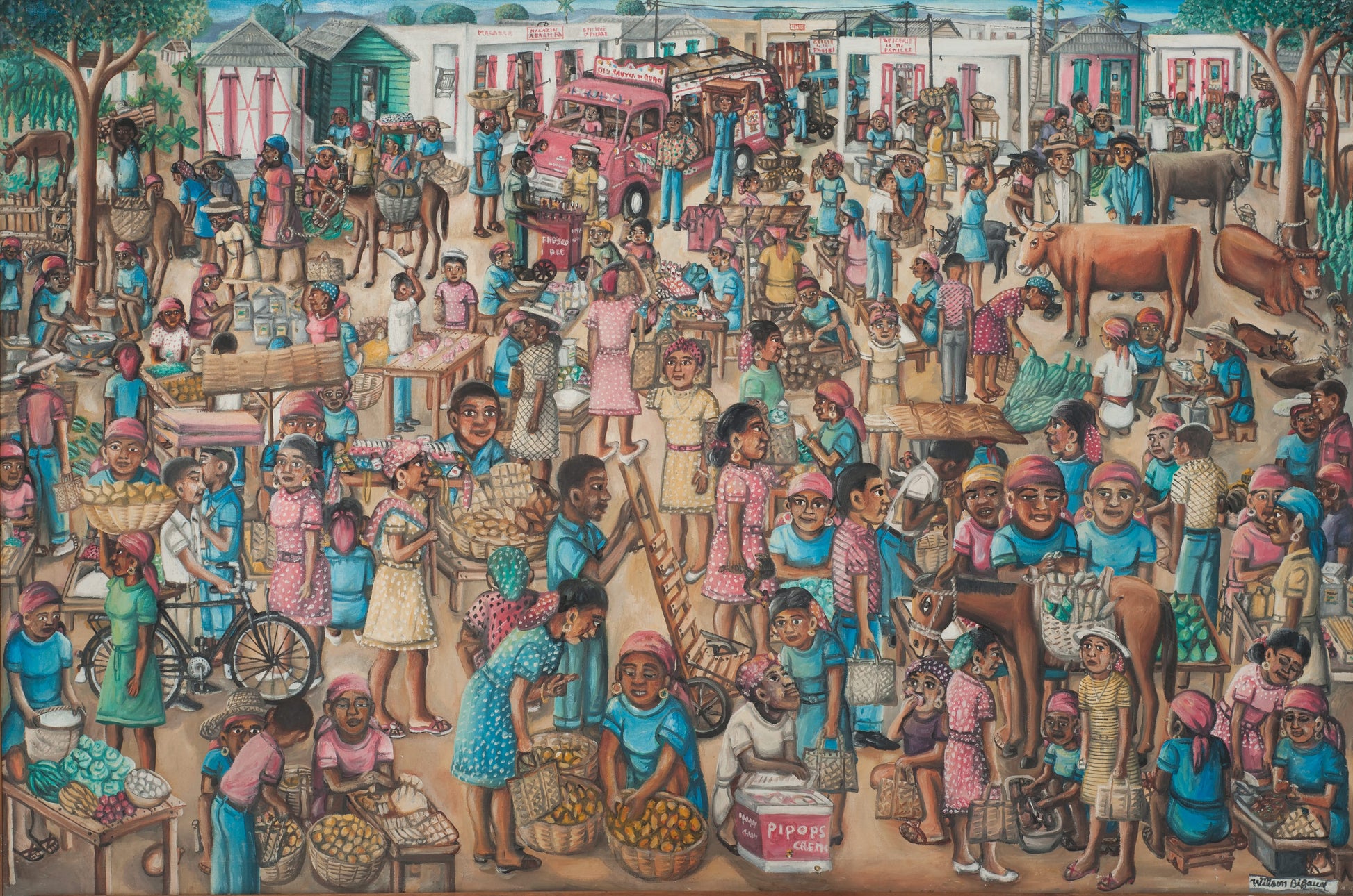 Wilson Bigaud (Haitian, 1931-2010) 40"x60" Busy Market c1980 Oil on Canvas Unframed Painting #6-3-96GSN-Fondation Marie & Georges S. Nader