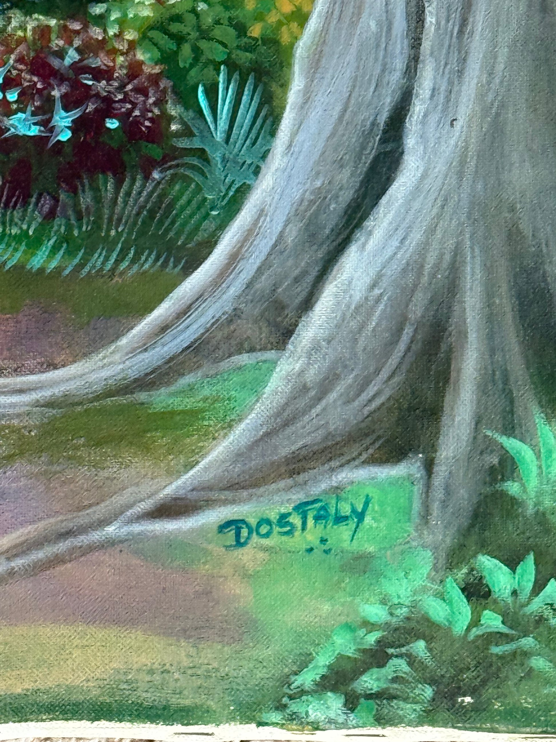 We are excited to present an exceptional original work of art by the acclaimed Haitian artist Emmanuel Dostaly, created in the 2000s. This striking 32"x32" acrylic on canvas showcases a surreal scene of two unicorns in a forest. The painting is in good condition and will be sold unframed. It originates from a private collector in Georgia, USA, and will be shipped directly from there. With your purchase, you will receive a certificate of authenticity from our gallery, ensuring the value and integrity of this remarkable piece. Don’t miss the opportunity to own this captivating work of art!