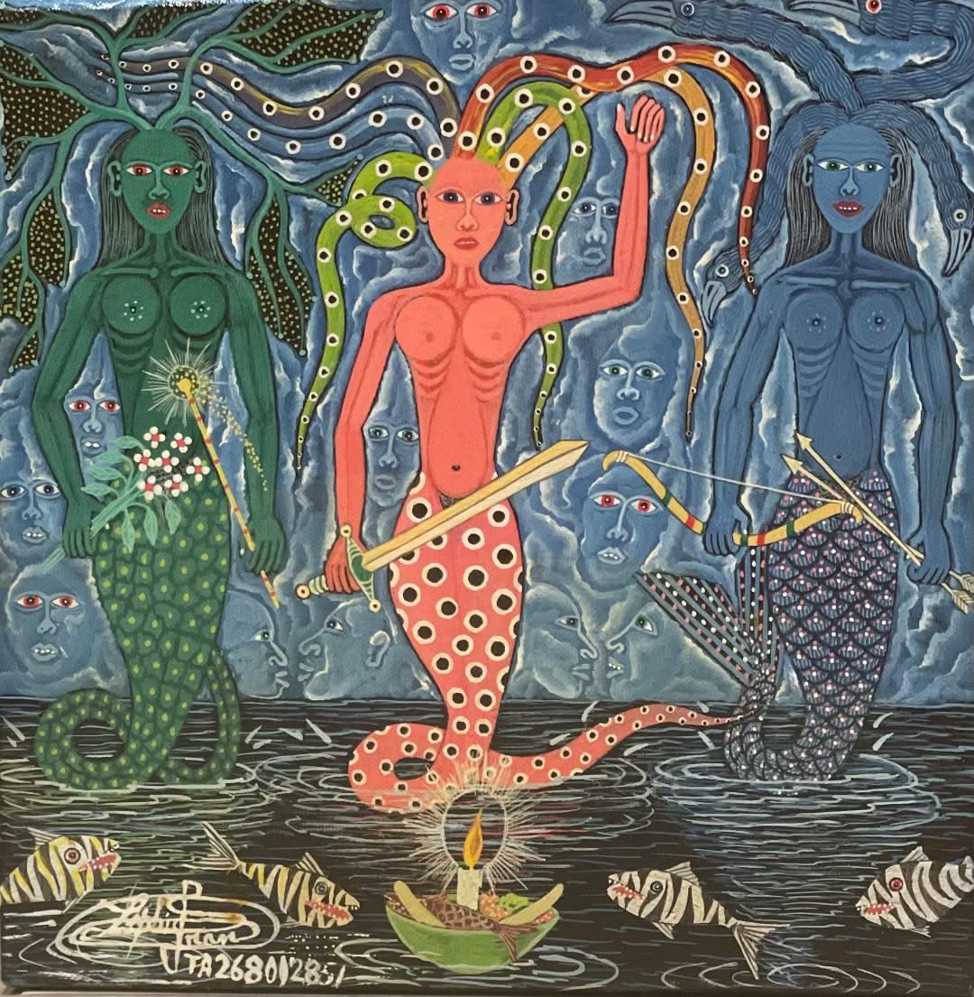 Frantz Zephirin 10"x10"x2" Offrandes aux Trois Erzulies 2021 Oil on Canvas Hand-Painted Borders #4MFN