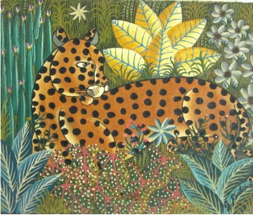 This is an original painting by the Haitian animalist painter Gabriel Coutard sold unframed.
