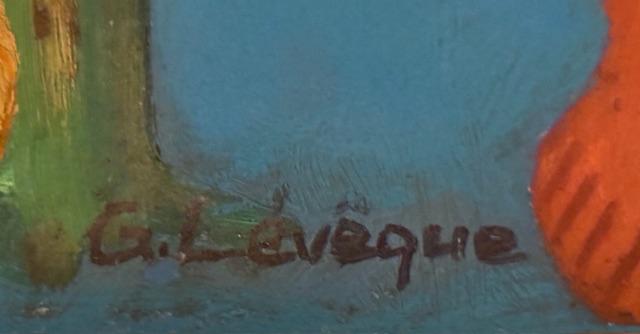 The Haitian artist Gabriel Lévêque was born in 1923 and died in 2013. In the early days of the Centre d'Art, co-director Selden Rodman invited William Calfee to instruct the primitive painters in the tempera technique for frescos. The Episcopal Bishop Voegeli, over the objection of higher-ups and the local elite, asked Obin, Benoit, Bigaud, Bazile, and Lévèque to decorate the church. It was a masterstroke, and all five artists have gained greater fame. Leveque's angels were above the main altar in the Episcopal Church, which was sadly destroyed during the Haiti 2010 earthquake. "The soft colors Lévèque uses are well suited to his holy pictures," says Gérald Alexis in his book Peintres Haitiens. (Bio Source: Haiti Vooddo Kingdom to Modern Riviera by John Allen Franciscus- pp. 77)
