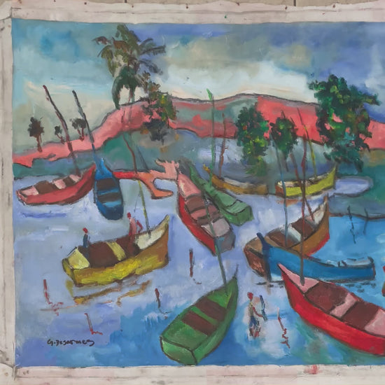 Born in Port-au-Prince on January 27, 1950, Yves Michaud/ Desarmes began painting at 19 under his original name, Yves Michaud, with Néhémy Jean. His two names each embody a different art style: Yves Michaud focuses on the social situation of Haiti and paints realistic human figures, while Georges Desarmes focuses on marine scenes, the home, and still life. Yves began painting as Desarmes as it became easier and freer for him to paint something accessible to a broader audience. He describes that it is not difficult for him to switch between Yves Michaud and George Desarmes while painting because he is still the same person—he channels different emotions and inspirations into his paintings.