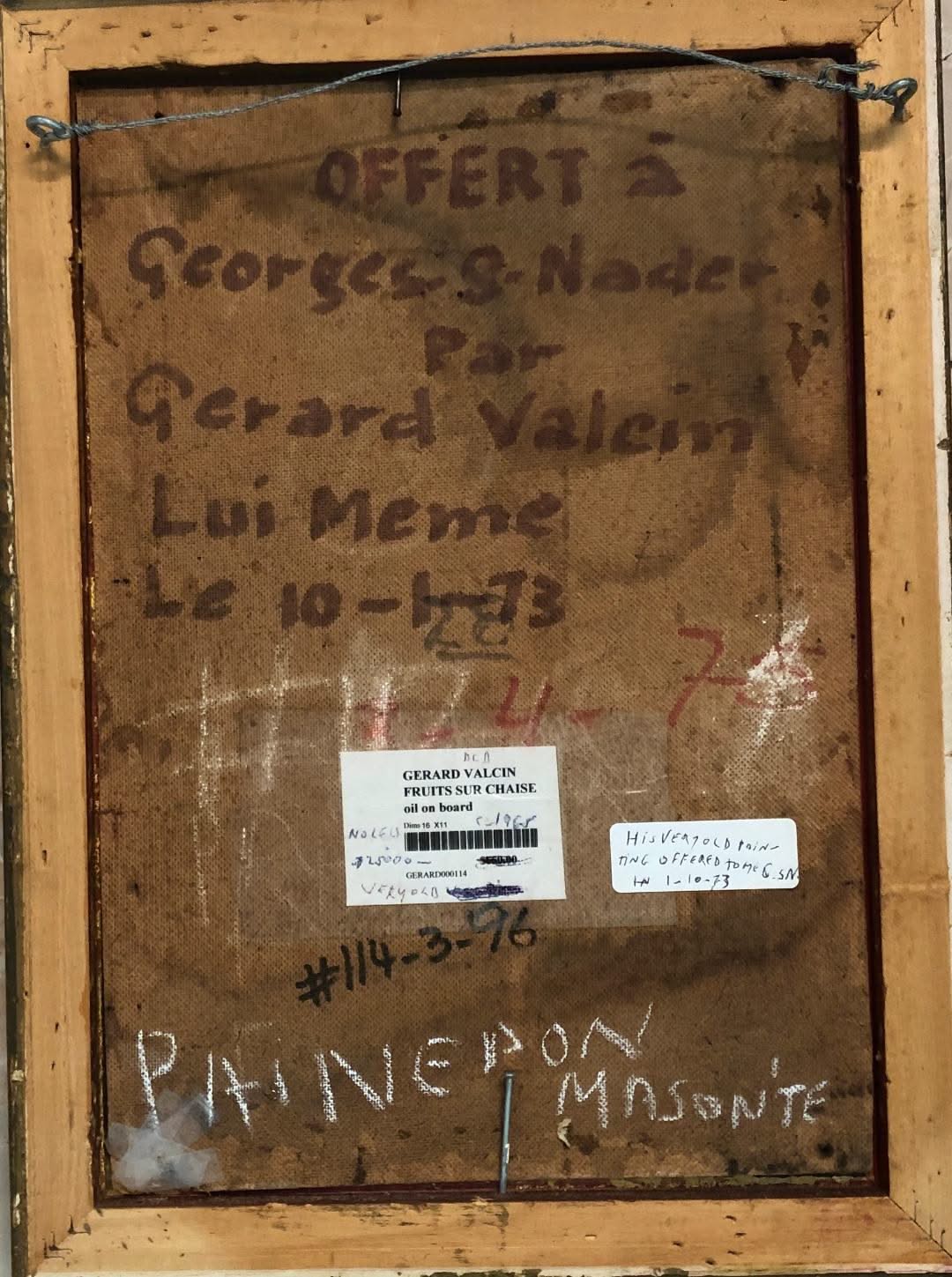 Gerard Valcin (1925-1988) 16"x11" Fruits on Chair Oil on Masonite #114-3-96GSN-NY