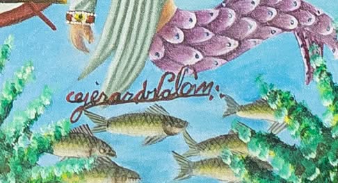 Gerard Valcin, the late famous Haitian master signed this original painting of a voodoo procession in the middle of the sea on the frontal center down. This painting is in good condition and shipped from Caracas, Venezuela by a private collector. Our art gallery will issue a certificate of authenticity upon purchase.