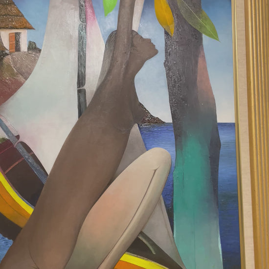 Jacques-Enguerrand Gourgue (1930-1996) 38"x18" The Forbidden Fruit 1994 Oil on Canvas Painting #1MFN-Private Collection of Myriam F. Nader