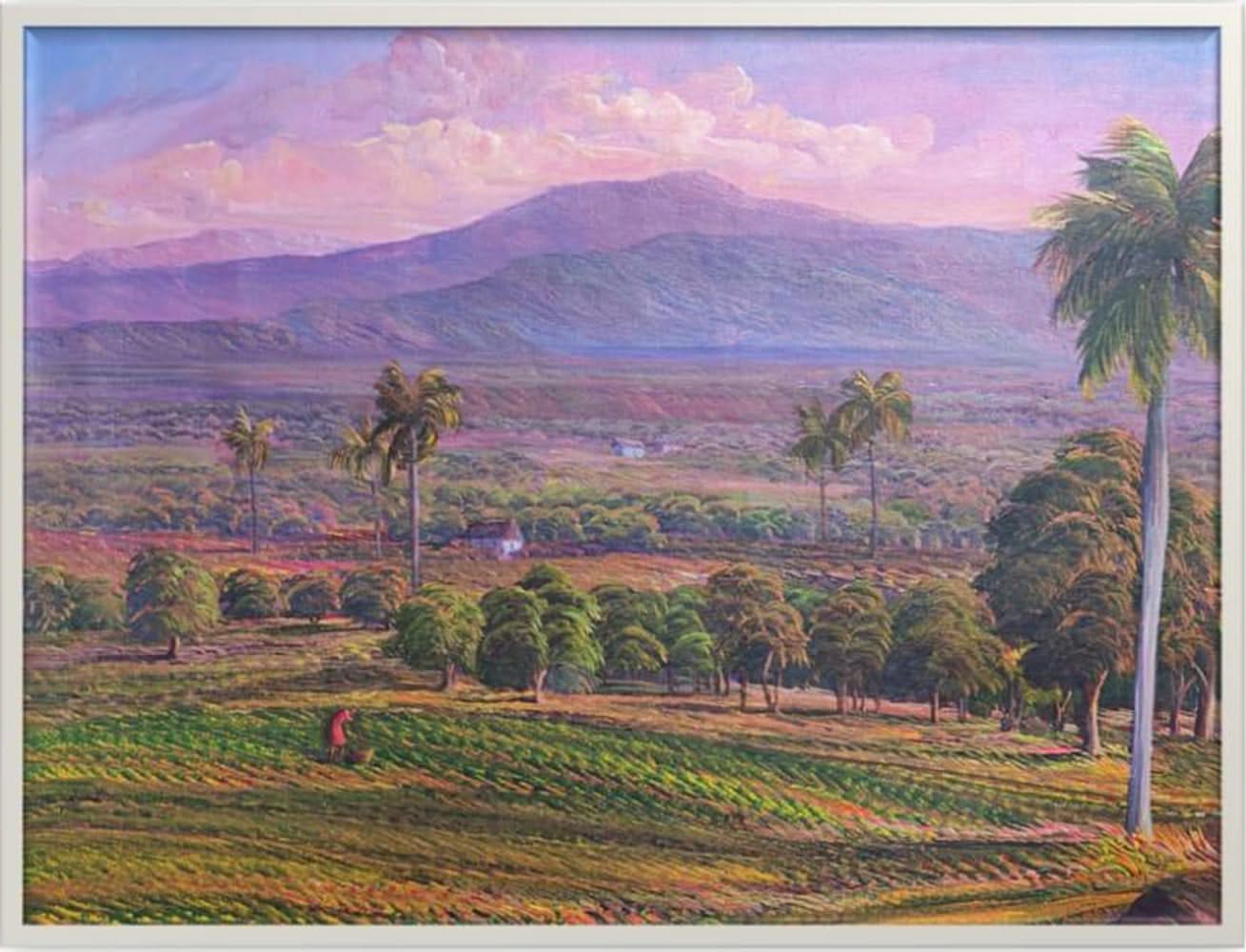 Self-taught Haitian artist Jean Adrien Seide was born in Cayes in 1952. He moved to Venezuela when his father passed away. He paints exceptionally structured landscapes, with a series of fields spreading out towards a distant horizon. At first glance, his paintings look representational, but a more detailed examination leads to a fascination, and the fantastic element predominates over the immediate reality.