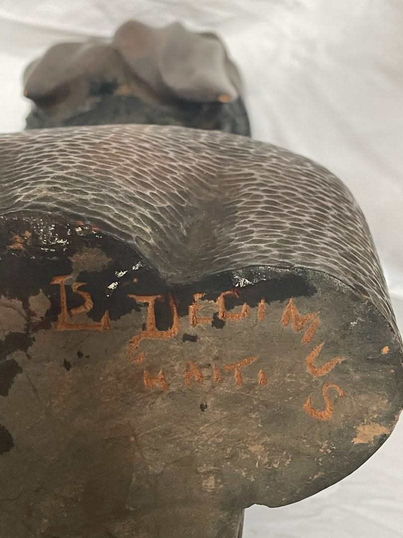 L.S. Decimus is a fine Haitian sculptor who used the classic style of mahogany wood carving with Haitian characters, especially women.