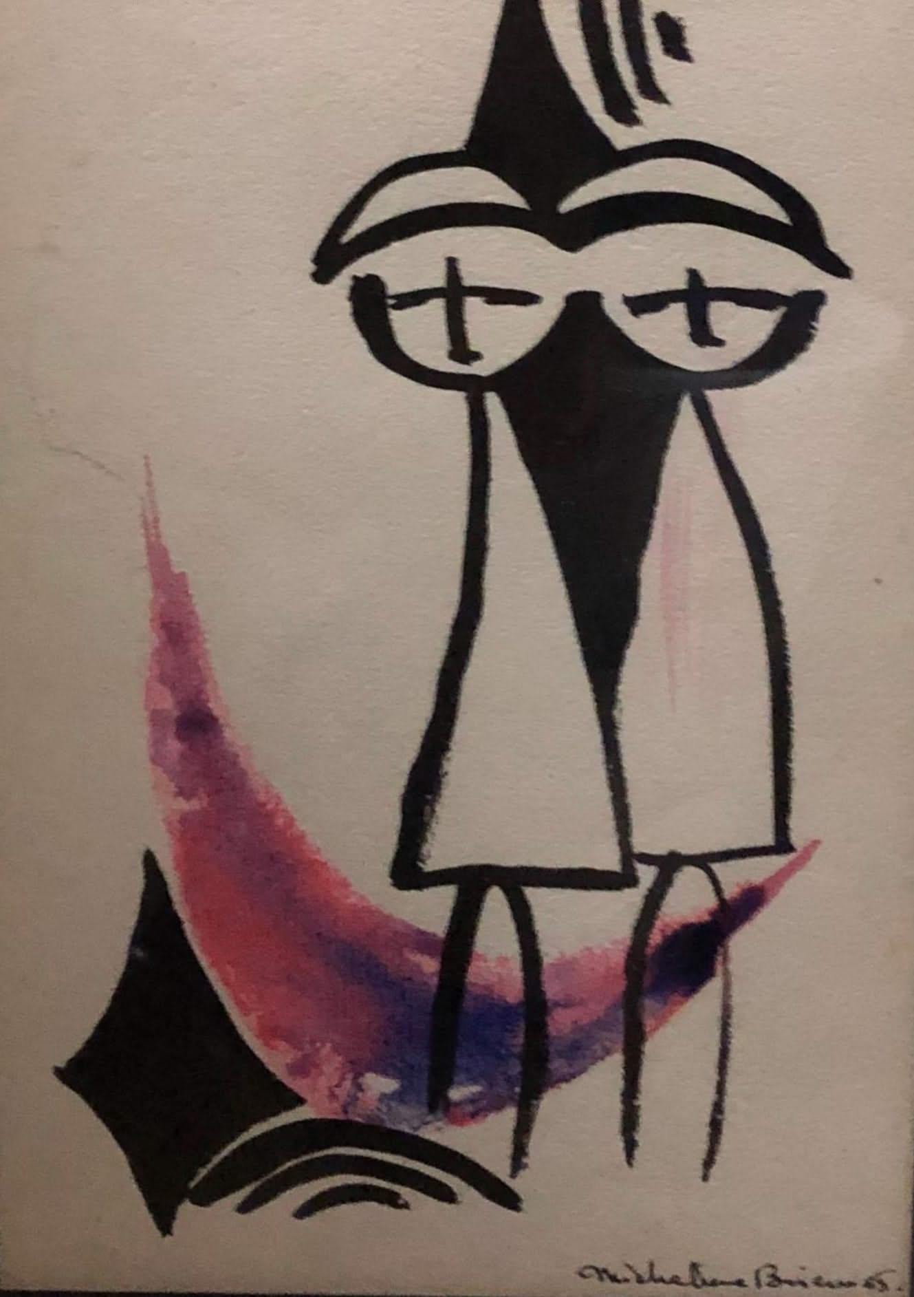 The Haitian woman artist Micheline Brierre created this miniature and beautiful watercolor on paper. It is framed under glass and belongs to the private collection of Georges S. Nader, and it is a collector's item.