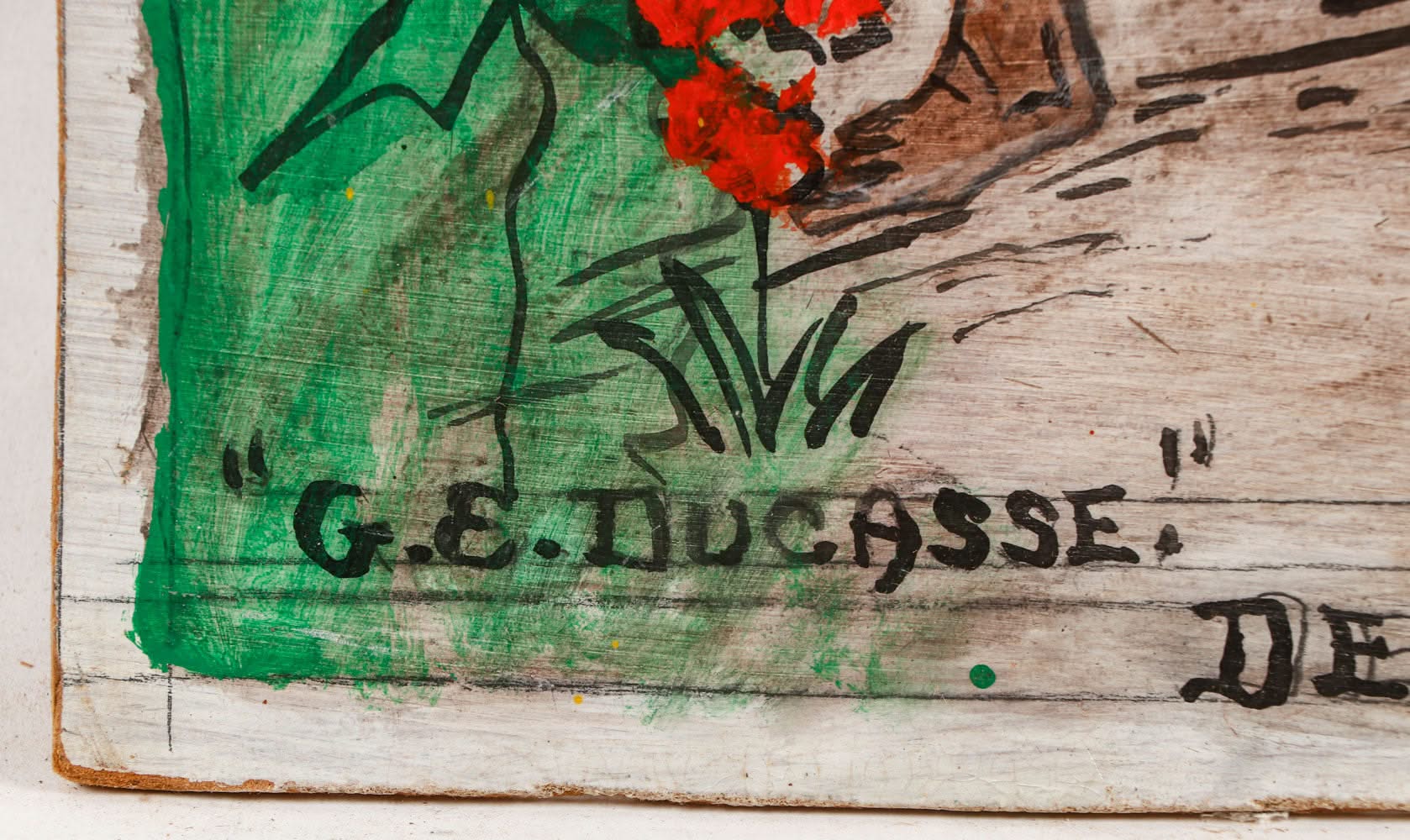 Gervais Emmanuel Ducasse was considered the most genuine of the Haitian primitive painters. He was a charming and submissive painter who seemed to have no conception of the environment. He took snapshots of life, notwithstanding either good or evil. Such paintings by Ducasse are jealousy guarded by collectors all over the world. Ducasse's name is mentioned in all significant Haitian art books, and his artworks are exhibited at many museums worldwide, including Nader's Art Museum, Museum" College St Pierre" in Haiti, and the Brooklyn Museum of Art in NY.