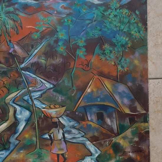Paul Beauvoir played an essential role in the evolution of modern Haitian painting. Although still figurative, his work is a study of color, where orange, yellow, and blue predominate. Strong demarcation lines with backgrounds of yellow color characterize his impressionist style. Mr. Beauvoir joined the Centre d'Art and later the Foyer des Arts Plastiques. Paul Beauvoir "...Using referential forms of Haitian daily life, his work is chiefly based on color effects" Peintres Haitiens by Gerald Alexis