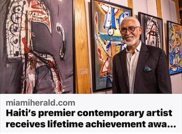 Dodard is a famous Haitian graphic artist and painter. Born in Port-au-Prince in 1954, he worked as an advertising illustrator. His works have been exhibited throughout Europe and the Americas. He received the first prize in drawing at the Junior Seminary of St-Martial's College in 1966. He studied at the PotoMitan Art School with Jean-Claude "Tiga" Garoute, Patrick Vilaire, and Frido Casimir. In 1973, he entered the Academy of Fine Arts. Then he worked as a layout artist and founded an audiovisual graphic arts studio. In 1978, he received a scholarship to the International School in Bordeaux, France, enabling him to specialize in Pedagogic Graphic Design. Two years later, he received a scholarship from the Rotary International Foundation and left on tour with the Group Study Exchange of Haiti to give conferences on Haitian culture. His artwork has evolved into large sculptures, fine ironworks, and fine jewelry designs. His paintings have inspired American fashion designer Donna Karan's 2012 Spring collection and a joint exhibition with her at the Museum of Contemporary Art, North Miami in Miami, Florida. (Wikipedia)