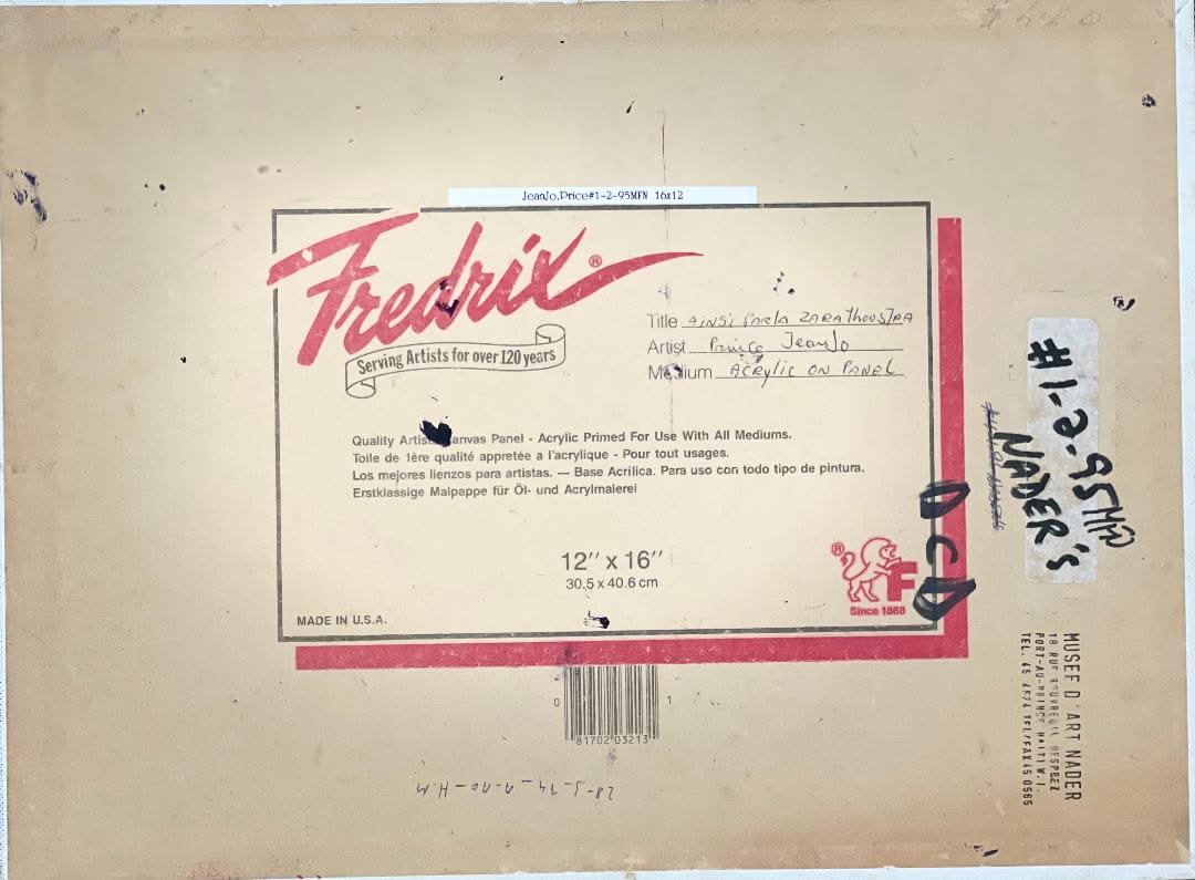 Signed Prince Jean-Jo 1994 on lower right corner & titled in the back " Ainsi Parla Zarathoustra"", this beautiful and original abstract 16"x12" unframed painting was created by the late Jean Joseph Lafontant , aka Prince Jean Jo, whose collectible art is scarce.