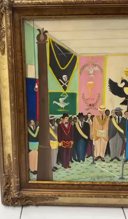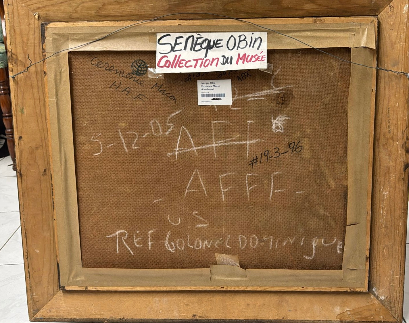 Seneque Obin (1893-1977) 20"x24" Haitian Masonic Lodge c1960 Oil on Masonite #19-3-96-3-96GSN-HA-Fondation Marie & Georges S. Nader