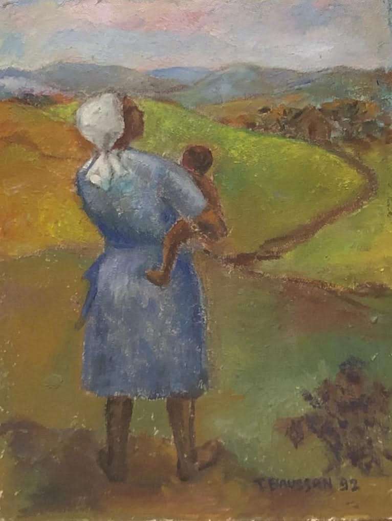 What a stunning artwork depicting a mother holding her child painted in 1992 by the late famous painter Tamara Baussan. The late famous painter was one of the first female painters in Haiti and was born in Baku in 1909 and died in Petion-Ville, Haiti in 1999. The power of her drawings is heightened by her use of vivid colors as Gerald Gerald describes her art in his book Peintres Haitiens. Get the book here!
