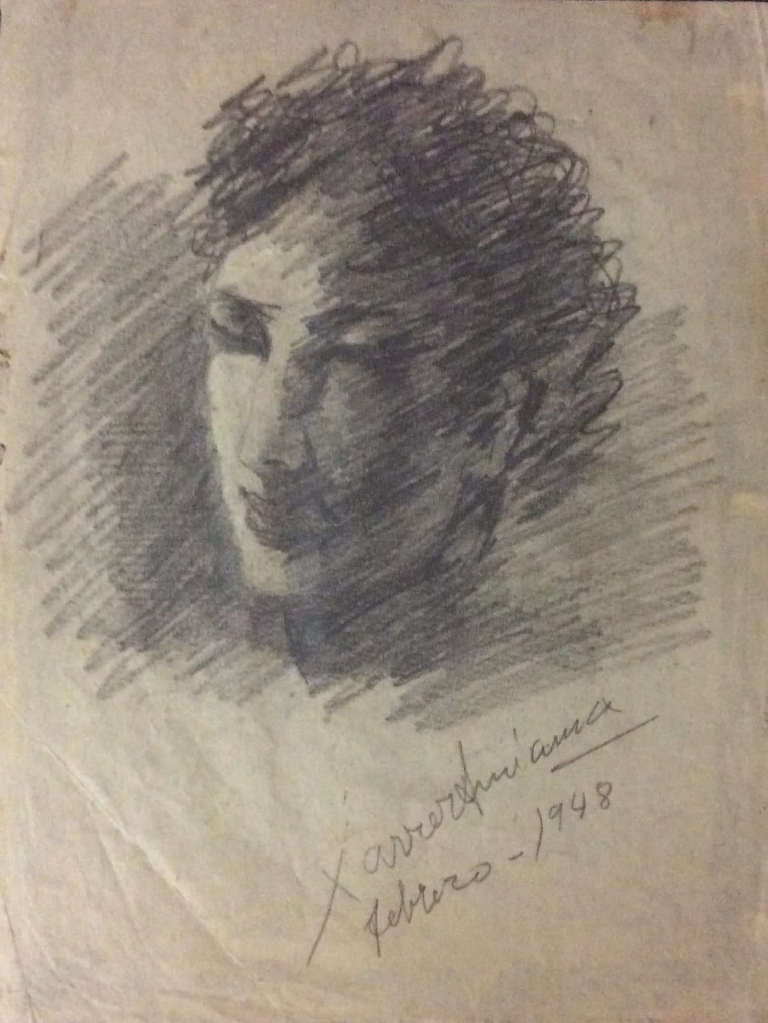 Xavier Amiama, the late famous painter, created this rare vintage 10"x8" series drawing made with ink and pencil. It is in good condition, dated February 1948, unframed, and will be shipped from New York.
